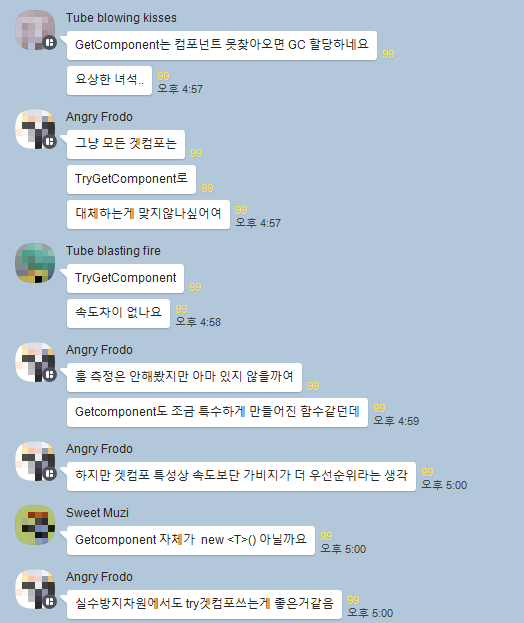 최근 유니티 한국어 개발자 톡방에서 TryGetComponent와 GetComponent의 성능에 대한 얘기가 나왔는데, 아무도 잘못된 부분을 짚어주지 않아 겸사겸사 코드 블럭 성능 테스트를 위한 코드를 작성하는 부분에 대해 다뤄보겠습니다.