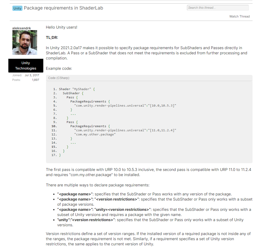 기존에는 조건을 지정해 여러 Pass로 나누어 종속적으로 컴파일하는 방식은 플랫폼 별 대응이나 기능별 대응을 위해 사용되곤 했는데, 이제 패키지 버전까지 지정해 Pass를 따로 컴파일하도록 지정할 수 있도록 지원합니다. 해당 패키지가 존재하면 그 패스를 컴파일 하는 방식이 됩니다.
