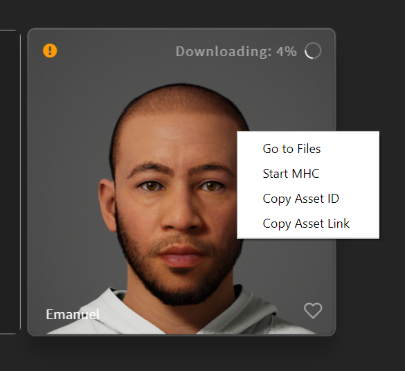 다운로드를 시작하면 진행도가 메타휴먼 아이콘 위에 나타납니다.