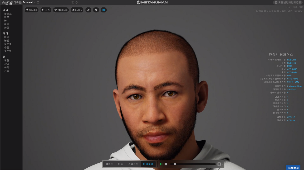 좌측 메뉴에서 내가 생성한 메타휴먼을 찾습니다.