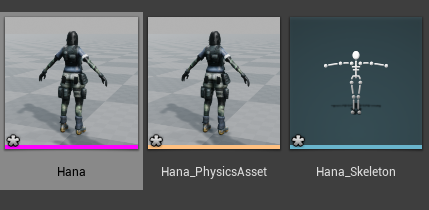에셋을 프로젝트에 임포트 후 저장하면, 파일 디렉터리에서 확인시 uasset이라는 확장자로 파일이 생성됩니다. 지원하는 파일에 따라 원본 파일의 데이터를 저장하는 경우도 있지만 대부분은 변환된 데이터만을 저장합니다. 이것이 에셋 관리에 있어 유니티 엔진과 다른 점들 중 하나입니다. 파일 임포팅을 시도하면 다이얼로그가 항상 나타납니다. 어떤 설정에 따라 임포트할 것인지 묻고, 임포트 후에도 변경할 수 있는 옵션과 그렇지 않은 옵션이 존재합니다. 파일 하나를 임포트한다고 항상 하나의 uasset이 생성되는 것은 아닙니다. 스키닝된 메쉬를 스켈레탈메시로 임포트하는 경우, 본 구조 데이터를 담은 스켈레톤과, 물리 시뮬레이션을 위한 피직스 에셋, 그리고 스켈레탈 메시가 생성됩니다.