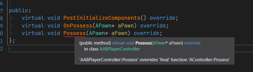 이득우 님의 책을 따라해보던 중 Possess 가상함수 오버라이드 과정에서 컴파일에러를 만났다.