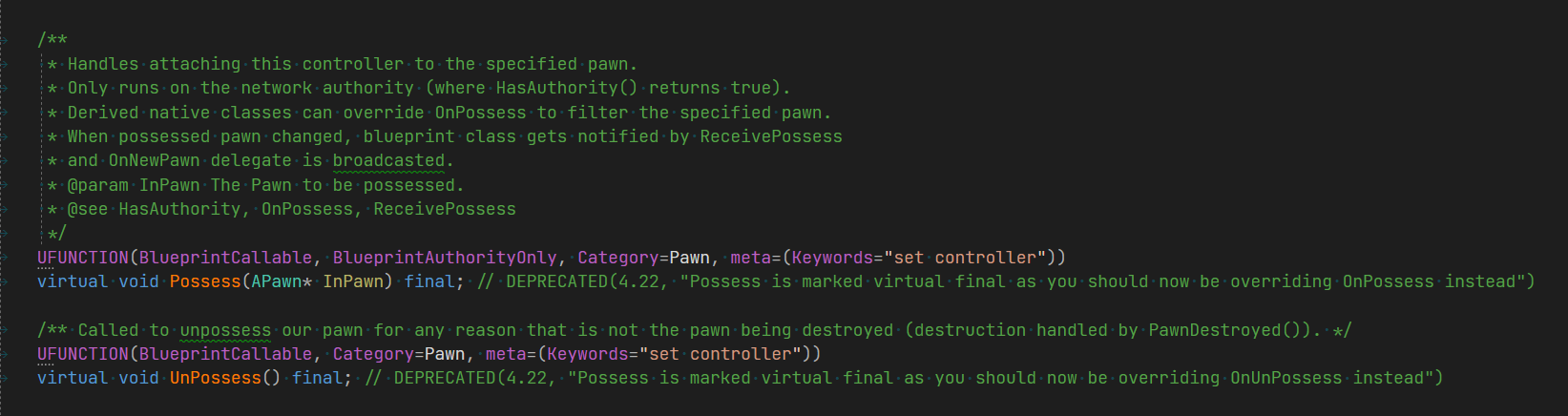 정의를 따라가보니 4.22에서 Deprecated 되었고 OnPossess를 사용하라고 한다.