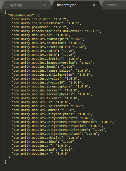 manifest.json을 텍스트 에디터로 열어 com.unity.shadergraph 관련 정의가 있는지 확인합니다.